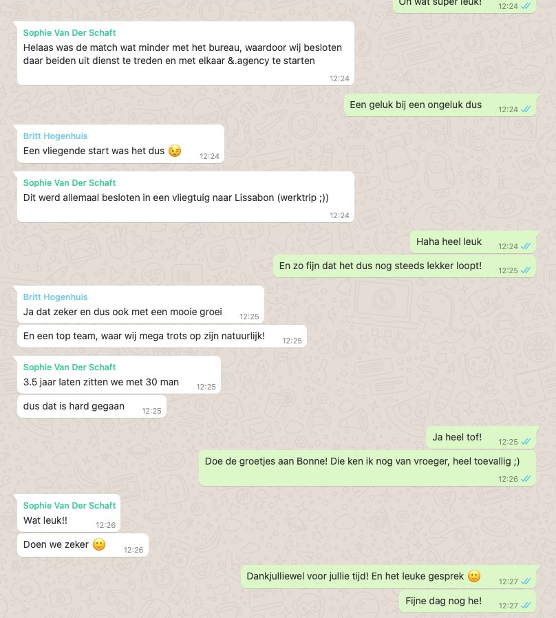 Sophie van der Schaft: Helaas was de match wat minder met het bureau, waardoor wij besloten daar beiden uit dienst te treden en met elkaar &.agency te starten