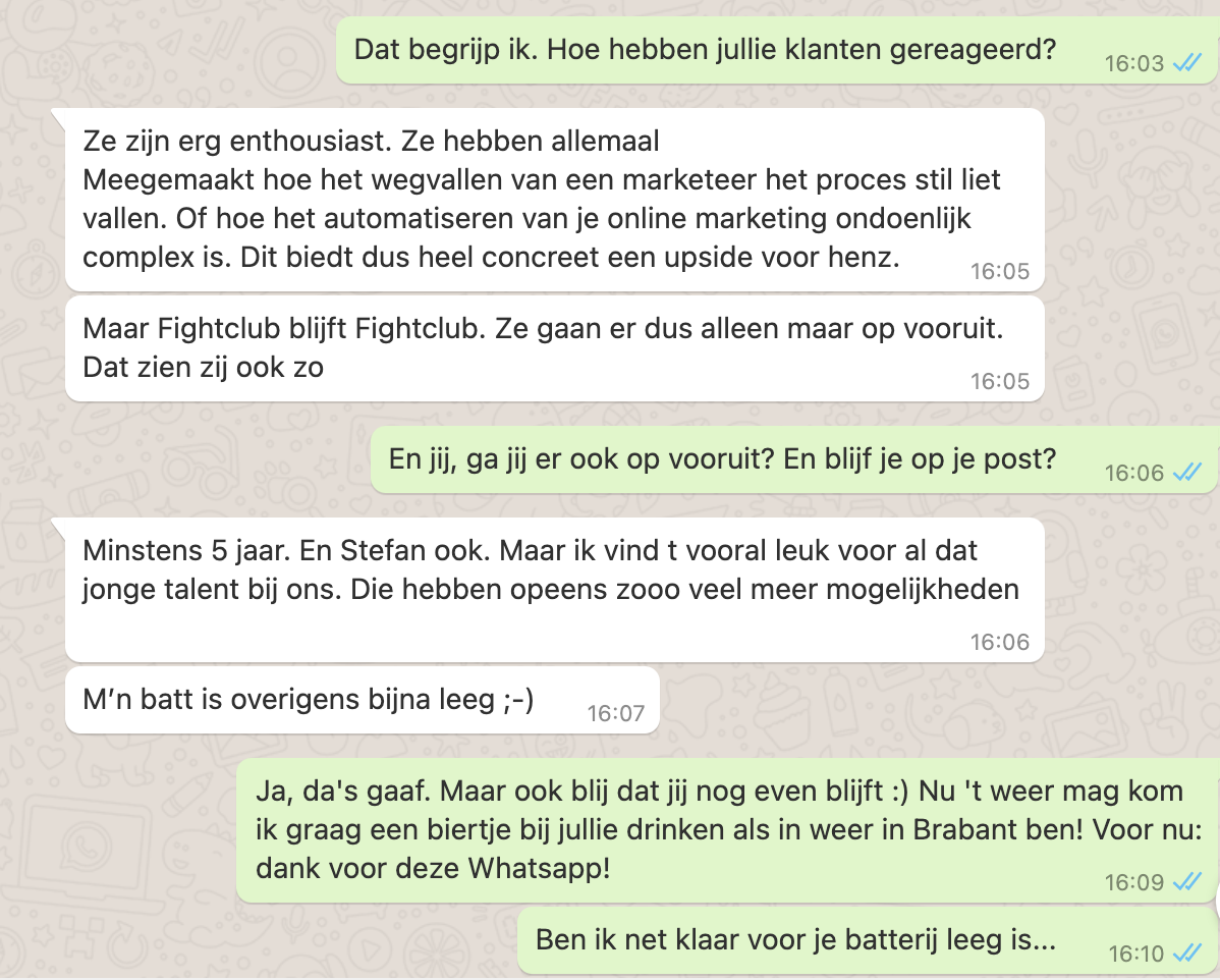 Ze zijn erg enthousiast. Ze hebben allemaal meegemaakt hoe het wegvallen van een marketeer het proces stil liet vallen. Of hoe het automatiseren van je online marketing ondoenlijk complex is. Dit biedt dus heel concreet een upside voor hen.