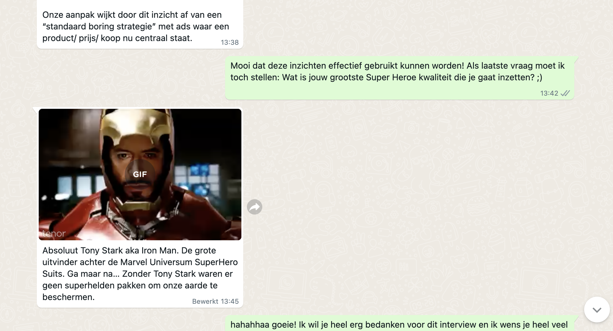 Mooi dat deze inzichten effectief gebruikt kunnen worden! Als laatste vraag moet ik toch stellen: Wat is jouw grootste Super Heroe kwaliteit die je gaat inzetten? ;)