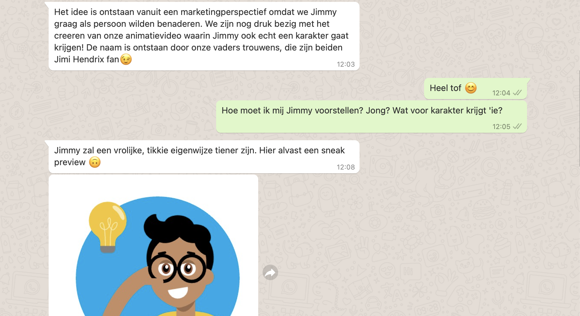 Het idee is ontstaan vanuit een marketingperspectief omdat we Jimmy graag als persoon wilden benaderen. We zijn nog druk bezig met het creeren van onze animatievideo waarin Jimmy ook echt een karakter gaat krijgen! De naam is ontstaan door onze vaders trouwens, die zijn beiden Jimi Hendrix fan