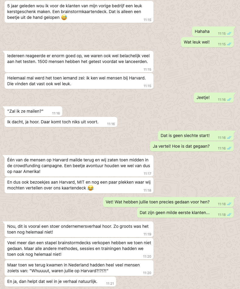 Helemaal mal werd het toen iemand zei: ik ken wel mensen bij Harvard. Die vinden dat vast ook wel leuk.