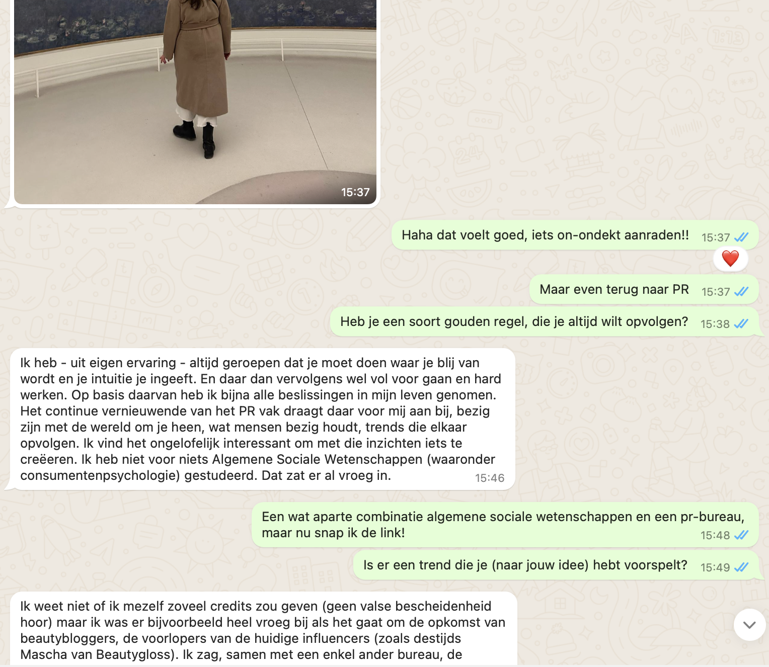 Heel erg bedankt voor de leuke antwoorden!! En heel veel succes de komende tijd met je pr-bureau