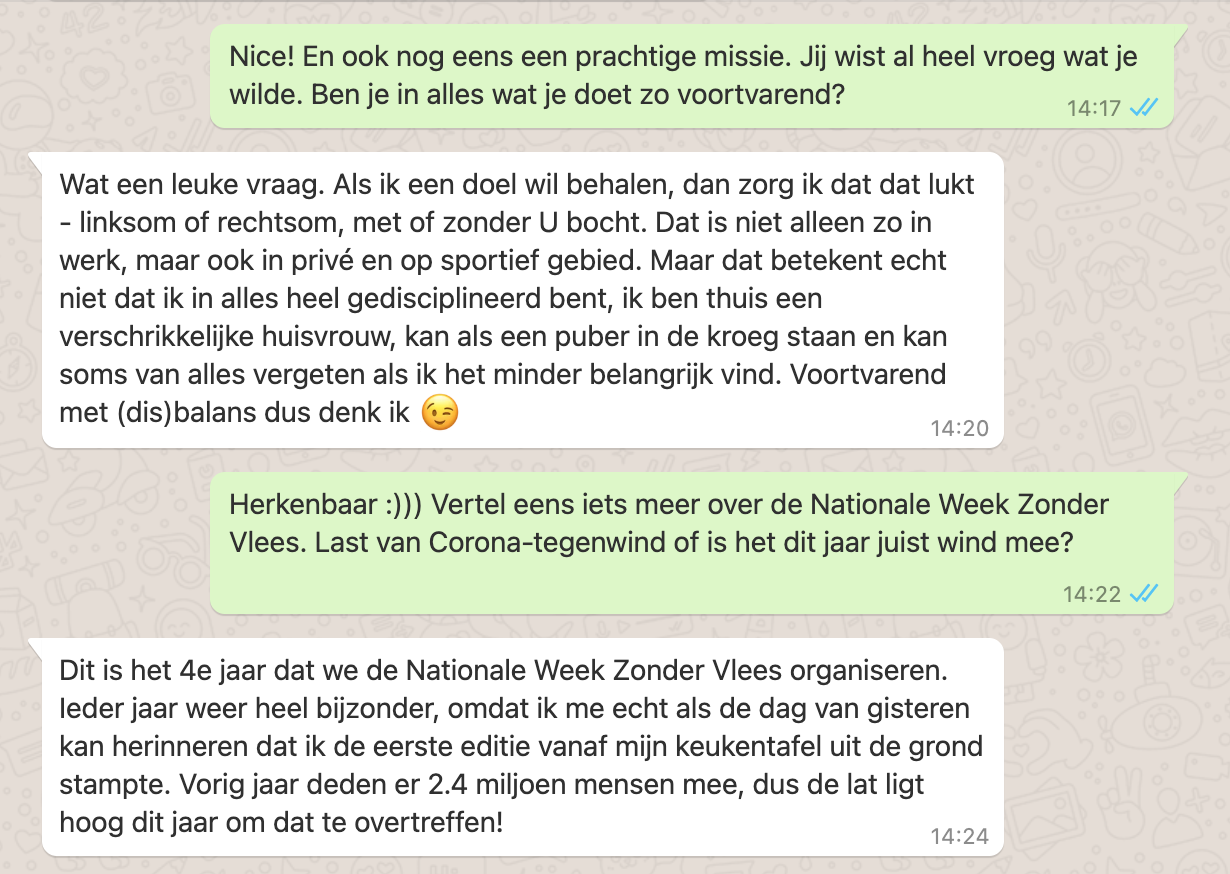 Ha Isabel, heb je even tijd om net me te appen ondanks alle drukte van de Nationale Week Zonder Vlees?