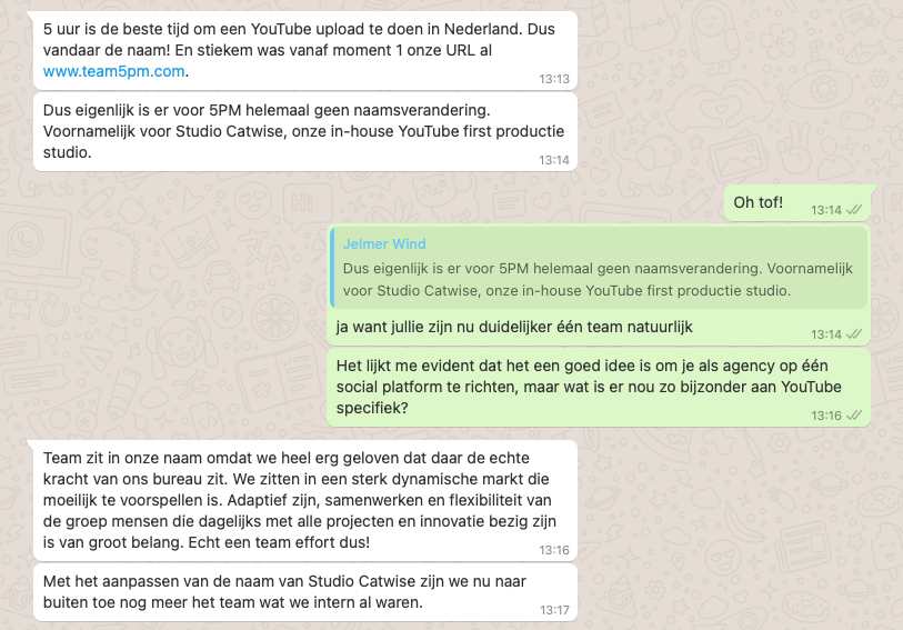 Dus eigenlijk is er voor 5PM helemaal geen naamsverandering. Voornamelijk voor Studio Catwise, onze in-house YouTube first productie studio.