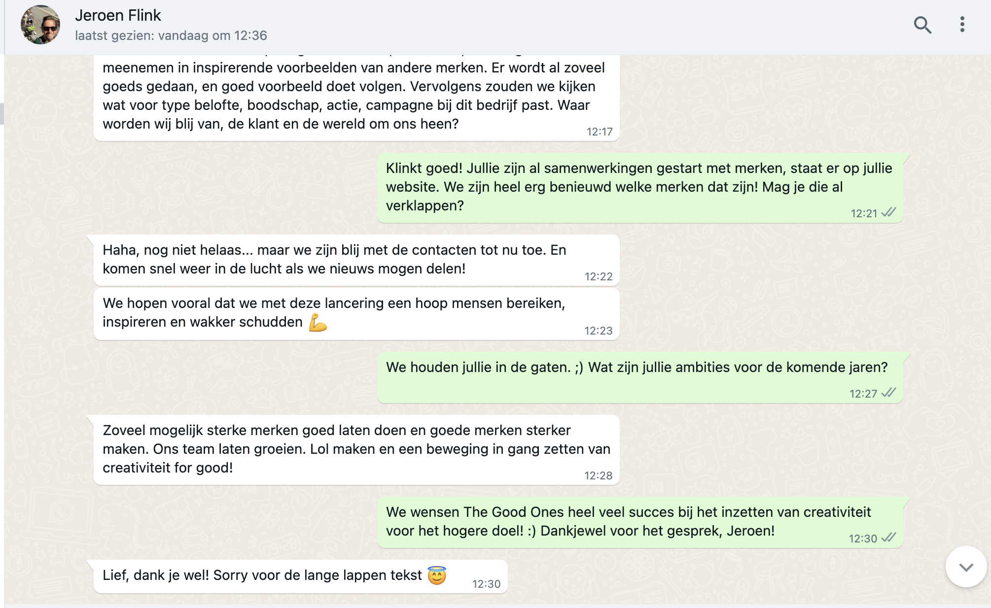 We wensen The Good Ones heel veel succes bij het inzetten van creativiteit voor het hogere doel! :) Dankjewel voor het gesprek, Jeroen!