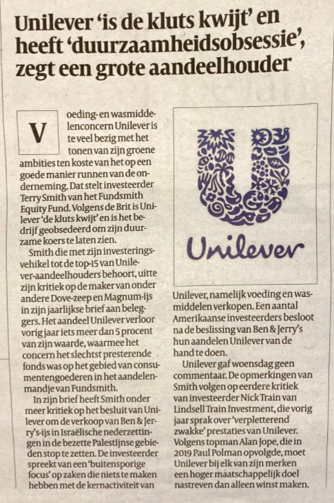 Dan moeten jullie het wel opnemen tegen grote spelers als Unilever en Procter. Gaan zij niet snel mee met deze trend denken jullie?
