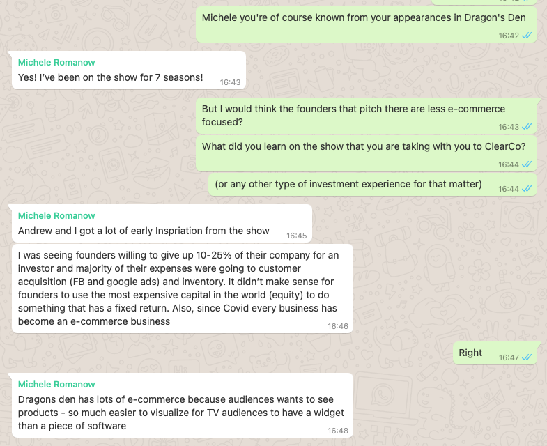 Michele Romanow: Hi andrew we’re doing this interview over text