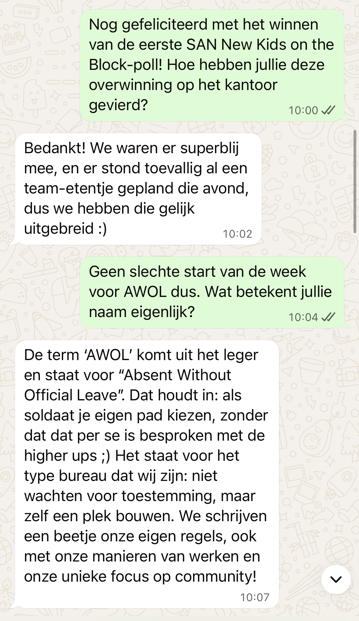 Geen slechte start van de week voor AWOL dus. Wat betekent jullie naam eigenlijk?