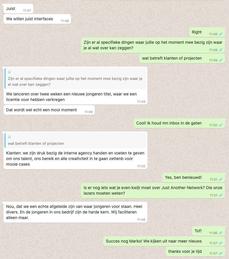 Is er nog iets wat je even kwijt moet over Just Another Network? Die onze lezers moeten weten?