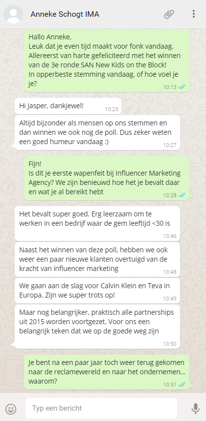 Influencer Marketing Agency (IMA) won de 3e ronde van SAN New Kids on the Block. We appen met Anneke Schogt, die vanaf begin dit jaar de Managing Director is voor IMA.