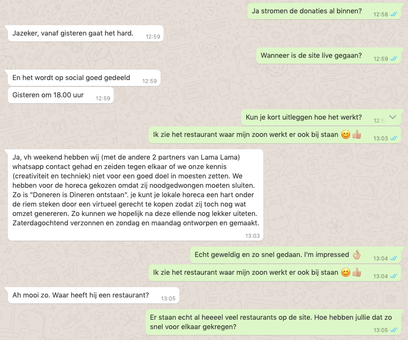 Hebben jullie al blije restauranthouders aan de lijn gehad? Die zien opeens allemaal donaties op hun bankrekening verschijnen