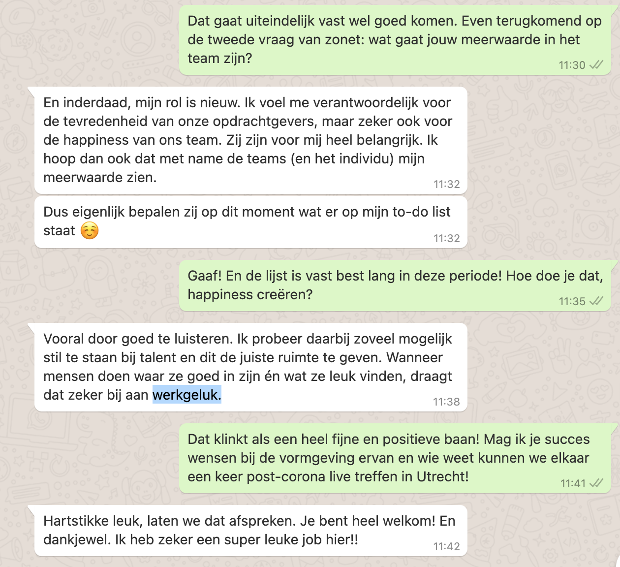 Gaaf! En de lijst is vast best lang in deze periode! Hoe doe je dat, happiness creëren?
