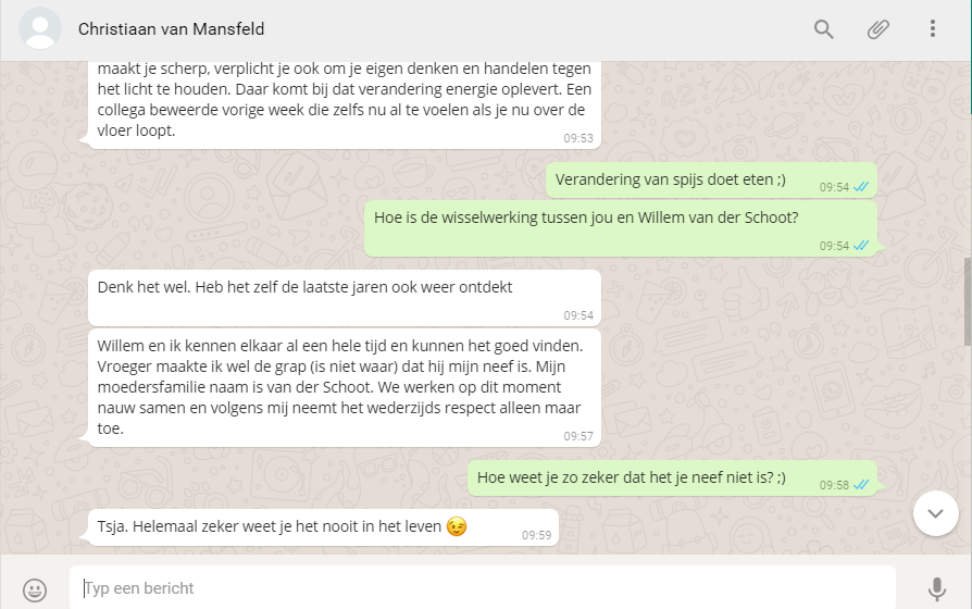 WhatsAppen met Christiaan van Mansfeld