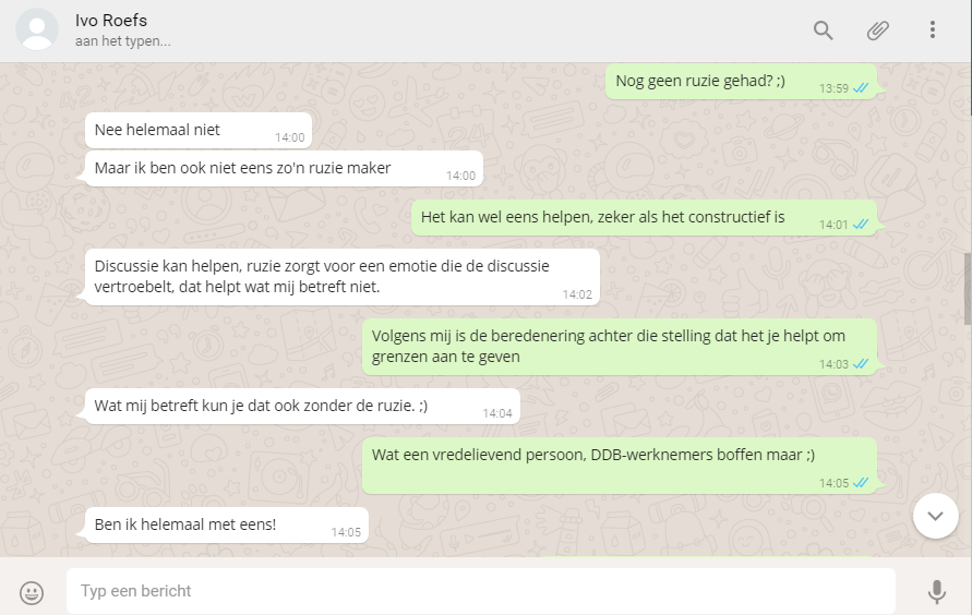 Wat een vredelievend persoon, DDB-werknemers boffen maar ;)