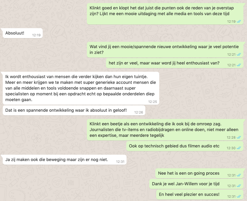 Een mooie career move voor Jan-Willem Brüggenwirth. Donderdag werd bekend dat hij van Talpa is overgestapt naar VBAT, waar hij als Executive Chairman aan de slag gaat. Dat vroeg natuurlijk om een Whatsappgeprekje.