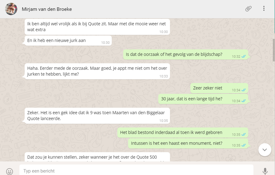 Quote bestaat 30 jaar, en dat moet gevierd worden. Het blad is al geruime tijd een begrip in Nederland, mede door zijn markante (hoofd)redacteuren). De laatste vijf jaar is het blad in handen van Mirjam van den Broeke, die zeer blij is met het jubileum. We spraken haar via de WhatsApp.