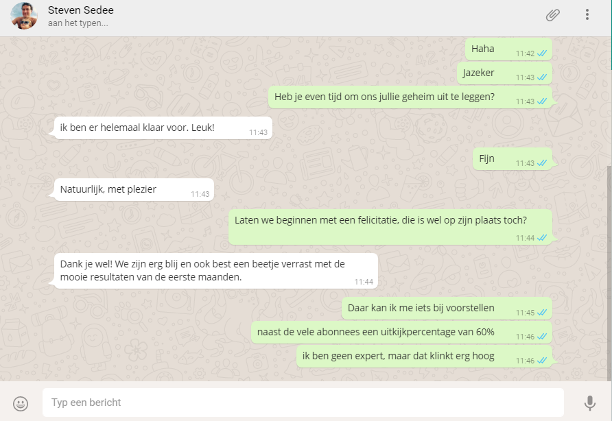 Jij bedankt voor het leuke gesprek. Tot de volgende keer! (Y)