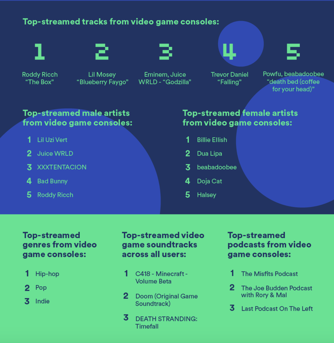 Het meest gestreamde nummer op game-consoles was ‘The Box’ van Roddy Ricch, gevolgd door ‘Blueberry Faygo’ van Lil Mosey.