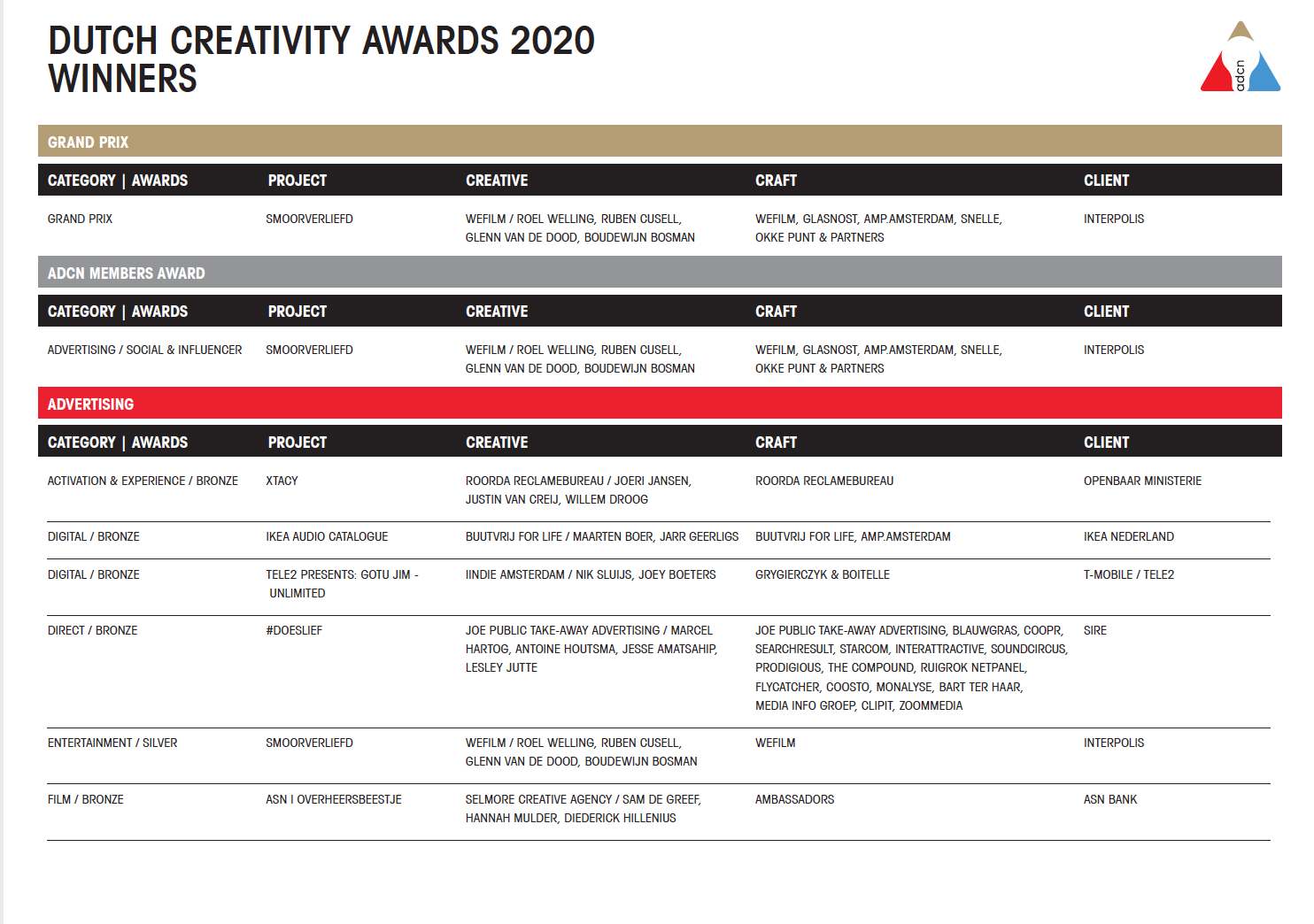 Smoorverliefd van Wefilm & Interpolis wint Grand Prix bij Dutch Creativity Awards