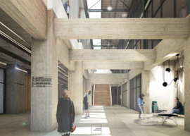 Dwars door het gebouw komt een centrale lichtstraat; een ontmoetingsplek die het kloppende hart van het gebouw vormt en waar zichtlijnen én mensen uit verschillende disciplines samenkomen. Hier wordt gebouwd aan het community-gevoel met events gericht op kennisdeling, tentoonstellingen en de toegang tot het gezamenlijke restaurant. Janne van Berlo van architectenbureau Atelier van Berlo: ‘De lichtstraat brengt levendigheid in de anders donkere kern en zet de zware betonstructuren van de kolenschachten in de spotlights.’