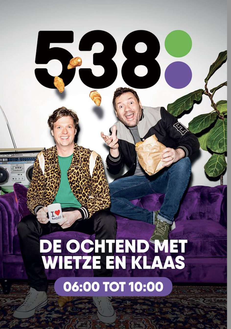 zender vandaag een crossmediale merkcampagne met als pay-off ‘Waar je ook bent: jouw hits, jouw 538’. De merkcampagne visualiseert het aanstekelijke, positieve effect van 538 op luisteraars. Zodra zij in aanraking komen met de hits van het merk, laat deze vibe ze niet meer los.Dennis van den Berg, Director Marketing & Communications Audio: “Ons onderscheidende karakter visualiseren we in de TVC met een speakerbox als metafoor voor Radio 538 als hitmaker. De speaker met 538 muziek reist met de dj’s door de wereld van onze luisteraars langs verschillende luistermomenten en –plaatsen. Overal en altijd steken we onze luisteraars positief aan met onze lust for life, waar of op welk moment er ook naar 538 wordt geluisterd. Waar je ook bent: jouw hits, jouw 538!"