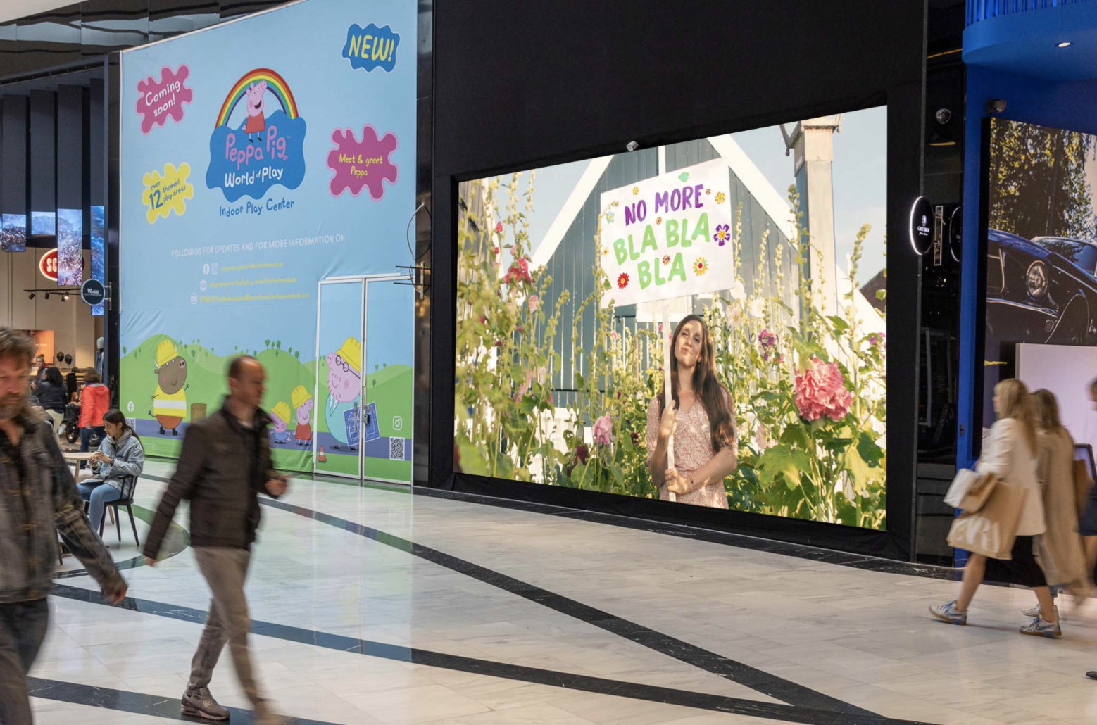Om de kreet kracht bij te zetten is deze te zien op honderden digitale billboards in de Randstad. Met name in
