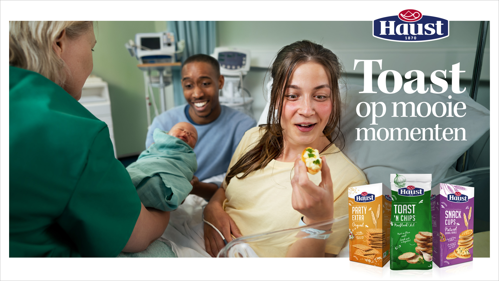 Met een nieuwe campagne wil Haust haar bekendheid vergroten en het eten van een Haust toastje onlosmakelijk verbinden met het borrelmoment. In de campagne zien we mensen die op allerlei vrolijke momenten Haust toast eten.