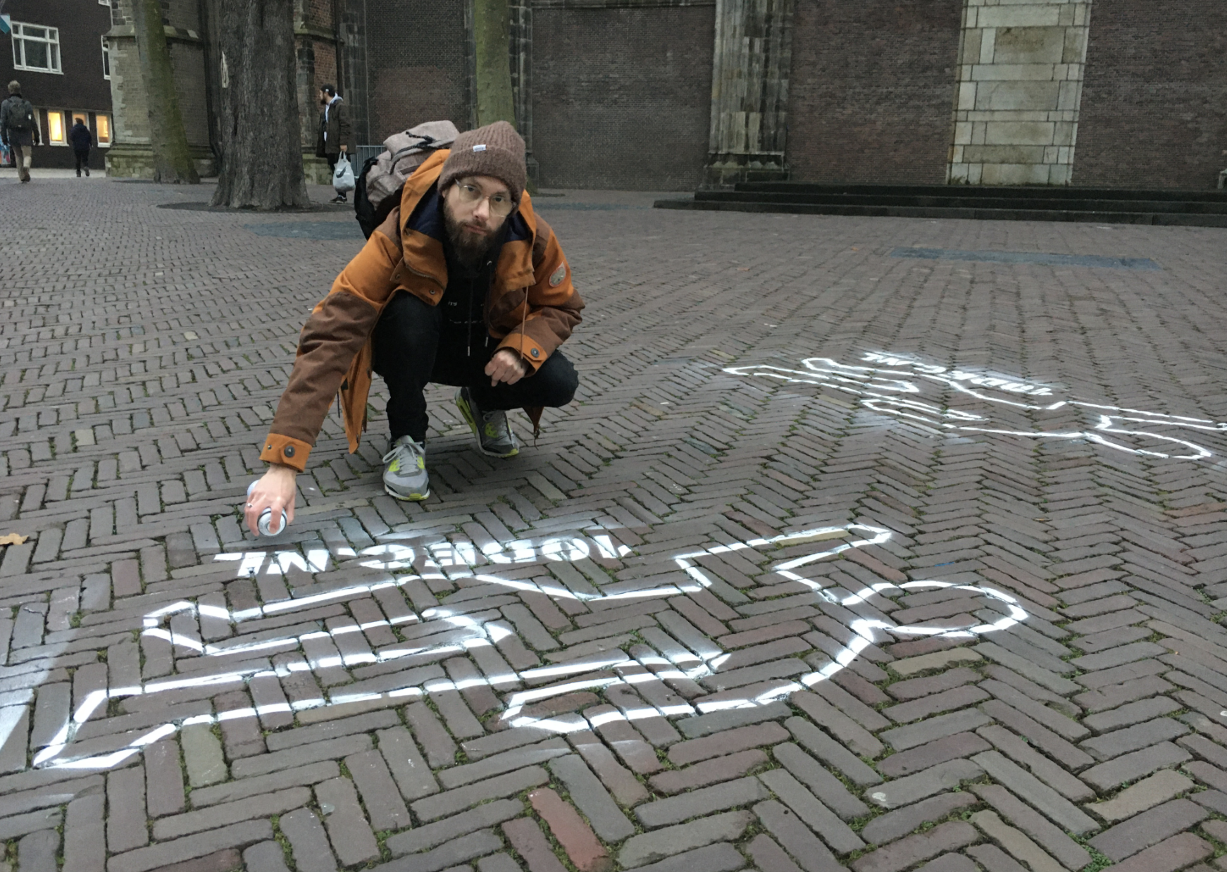 Roald kondigde de lancering afgelopen maandag al indirect aan, toen hij en zijn collega’s krijt-omtrekken van
