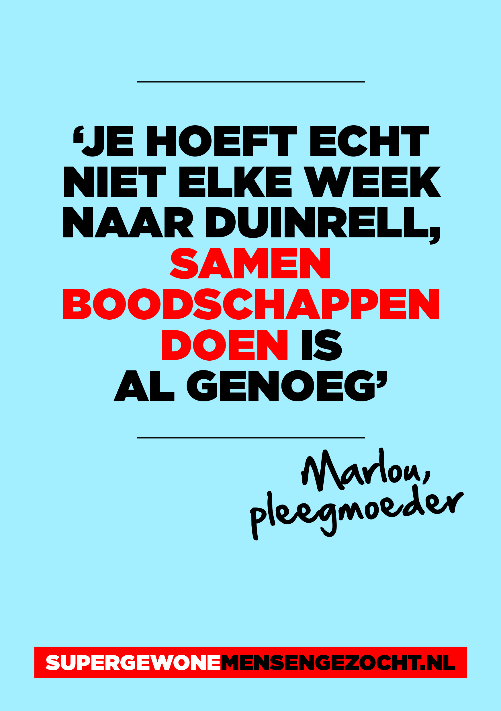 Met dat inzicht ontwikkelde Johnny Wonder de wervingscampagne ' SuperGewone Mensen Gezocht' Centraal daarin staat de website SuperGewoneMensenGezocht.nl, met 20 eerlijke verhalen over pleegzorg verteld door voormalige pleegkinderen, (pleeg)ouders en experts. De campagne wordt ondersteund met onder andere radiospots, posters, online bannering, een campagnefilm en advertenties in de krant.