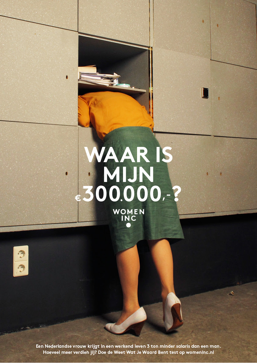 1 april gaat WOMEN Inc. van start met de beeldcampagne ‘Waar is mijn €300.000,-?’ en roept alle werkende vrouwen van Nederland op de ‘Weet Wat je Waard Bent’ test te doen. In de maanden april en mei vinden diverse acties richting overheid en werkgevers plaats, waaronder een expertmeeting voor werkgevers en werknemers. Ook wordt een workshop onderhandelen georganiseerd.