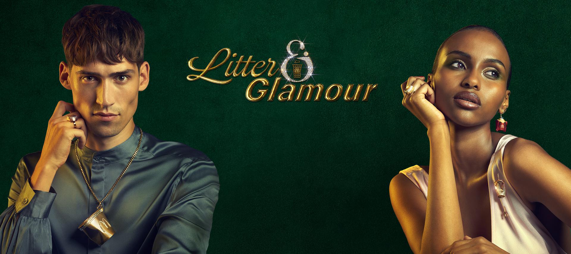 De zeven sieraden, lekker overdreven bling en groot, begonnen hun leven als verpakkingsmateriaal van McDonald’s, maar werden ergens in Nederland achteloos op de grond gekwakt. De restaurantketen raapte ze op, voorzag ze van een laag goud en kristallen, en gaf zo letterlijk glans aan afval. Hiermee zijn de sieraden dus ook een statement tegen rondslingerend vuil. De sieraden zijn niet te koop, maar worden weggeven aan mensen die hun afval ‘gewoon’ in de afvalbak gooien. Dat werkt zo: bij elk van de meer dan 250 McDonald’s restaurants staat één gouden afvalbak en een deurwaarder bepaalt van tevoren bij welke bak en op welk exact tijdstip de prijzen zullen vallen. Iedere gast die tussen nu en 12 september z’n afval in een gouden bak gooit, maakt zo automatisch kans op een van de glimmers. Nederland schoon, jij bling, iedereen blij, is het motto.