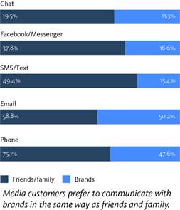 Tegenwoordig verwachten consumenten dat de interactie met de klantenservice vergelijkbaar is met communicatie in het privéleven. Dat betekent bijvoorbeeld dat ze hun telefoonaanbieder via social media een vraag kunnen stellen over een factuur of hun media-aanbieder via een online-chat kunnen vragen wanneer het nieuwe seizoen van hun favoriete serie start.