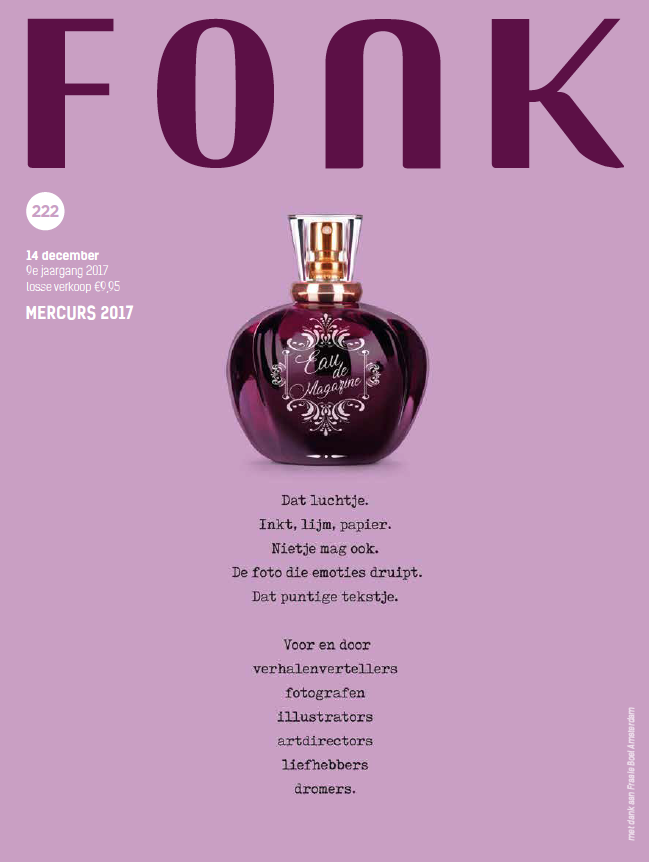 Onze cover zegt waar het om draait in de een-na-laatste editie van 2017. Fonk 222 ademt magazines en geeft vorm aan onze niet aflatende liefde voor magazinemakers. Grote en kleine titels, dikke deuren of skinny types, grappenmakers, rondelnichten en bloedserieuze opiniemakers; het maakt ons niet uit, zolang het maar een màgazine is. Meet the winners:
