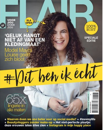 En wat blijkt: op social media doen vrouwen zich beter voor dan ze zijn. Zonde, iedere vrouw is goed zoals ze is, vindt weekbald Flair en daarom maakt het magazine deze week een statement met The Real Issue: een nummer dat 100% echt is. Dat begint met de unieke splitcover, waarop plussize model en blogger Mayra Louise laat zien hoe mooi diversiteit en liefde voor jezelf is.