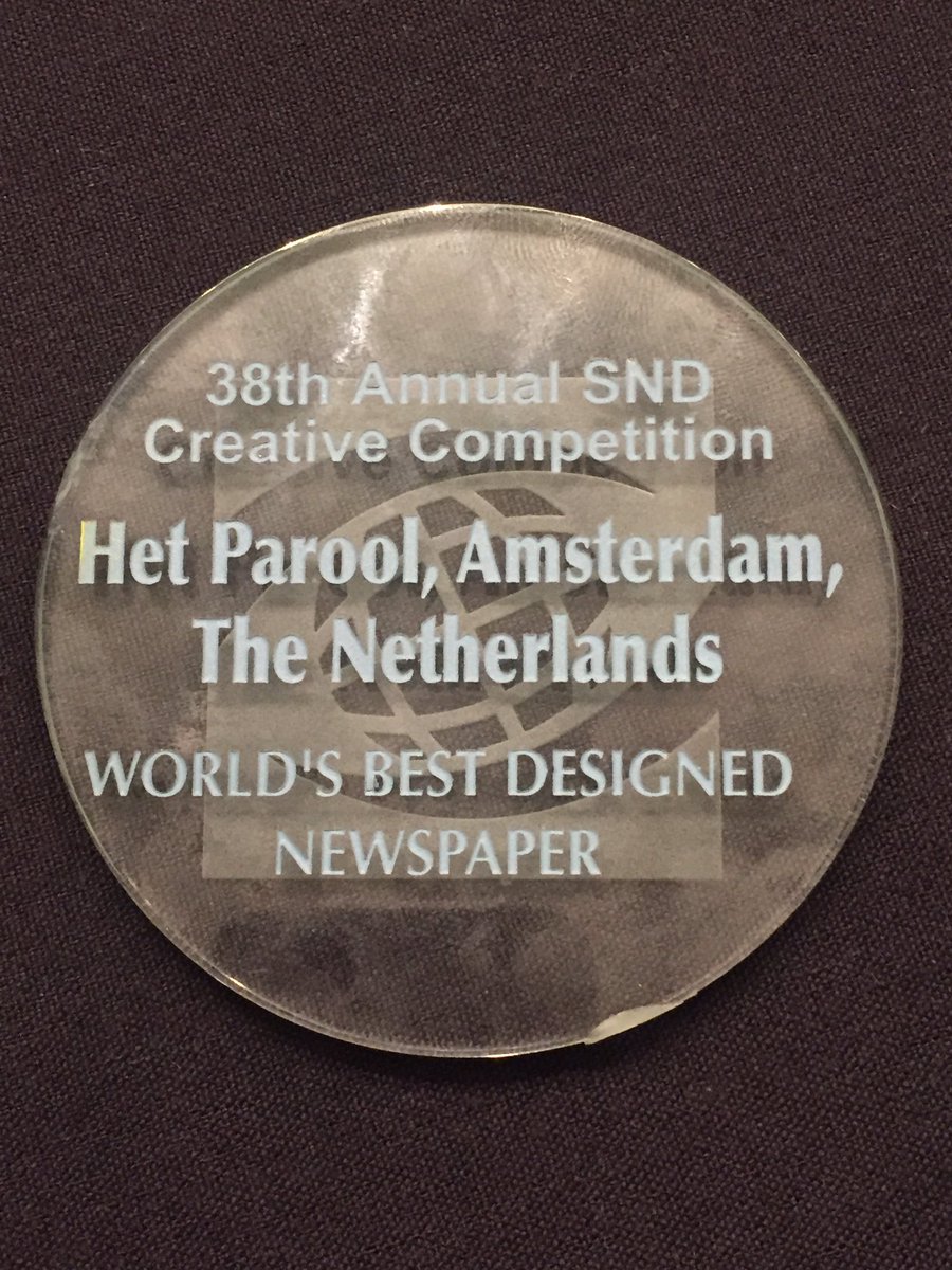 Afgelopen weekend is Het Parool uitgeroepen tot World's Best Designed Newspaper tijdens dejaarlijkse bijeenkomst van de Society for News Design, een internationale koepelorganisatie van vormgevers en journalisten.