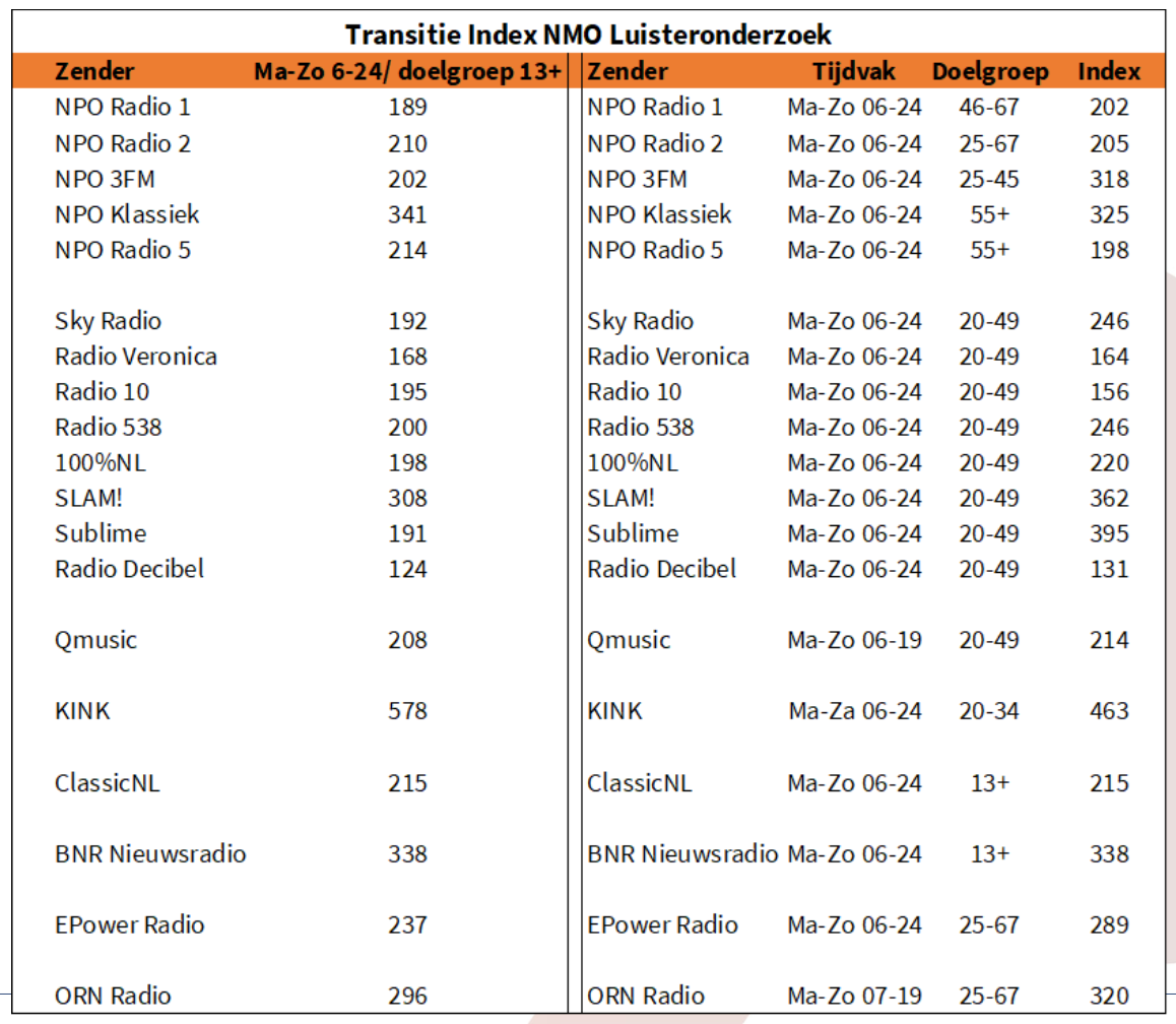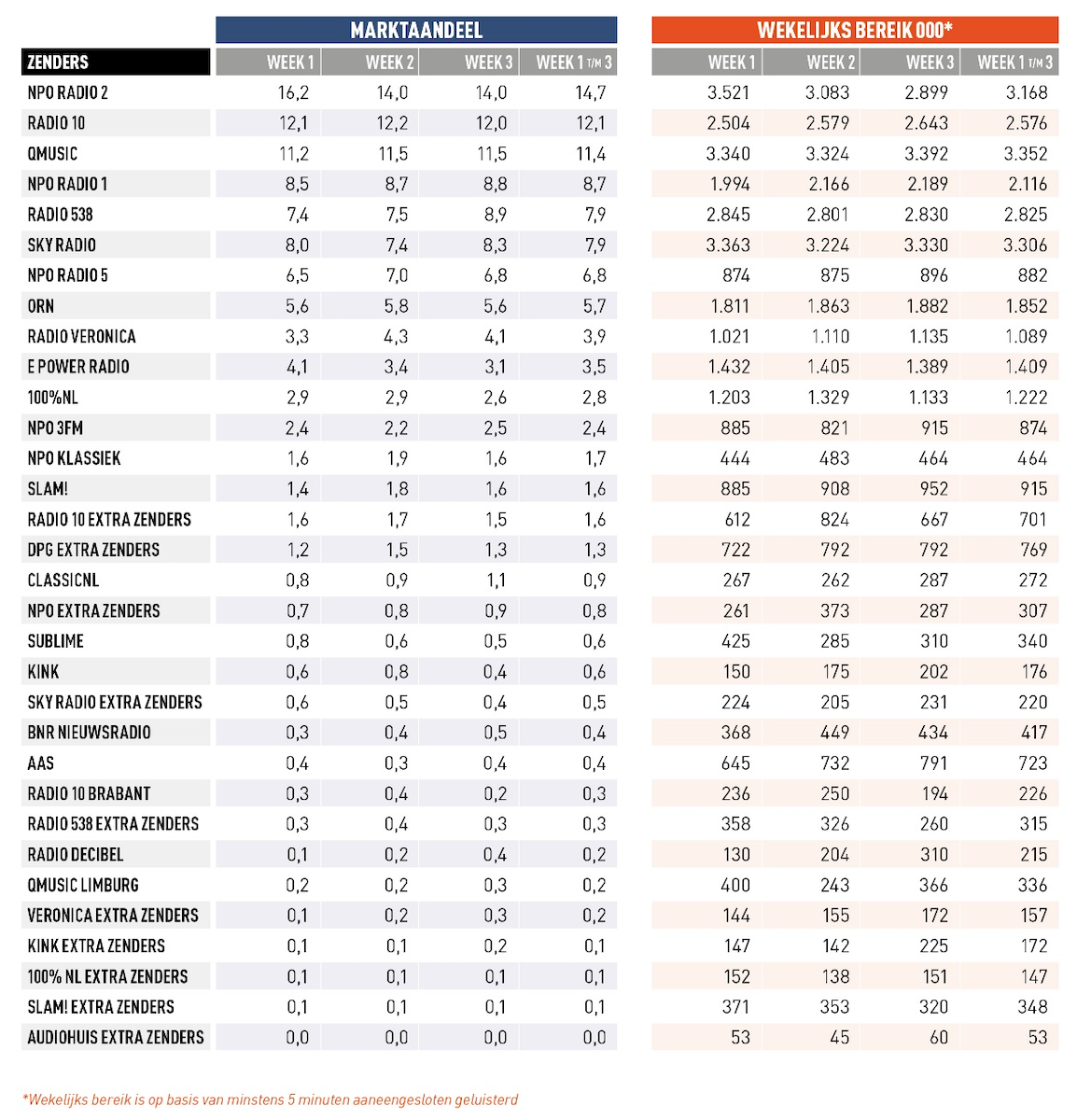 Nieuw NMO Luisteronderzoek laat hoger bereik en meer schommelingen van radiozenders zien