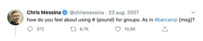 In 2007 zag de hashtag het levenslicht. Programmeur Chris Messina stelde voor om de