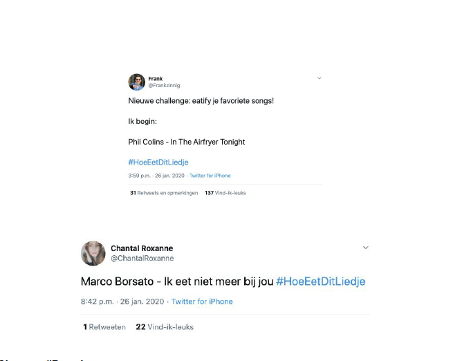 aan klassiekers zoals ‘Ik leef niet meer voor jou’ of ‘In the air tonight’. Er kwamen zoveel