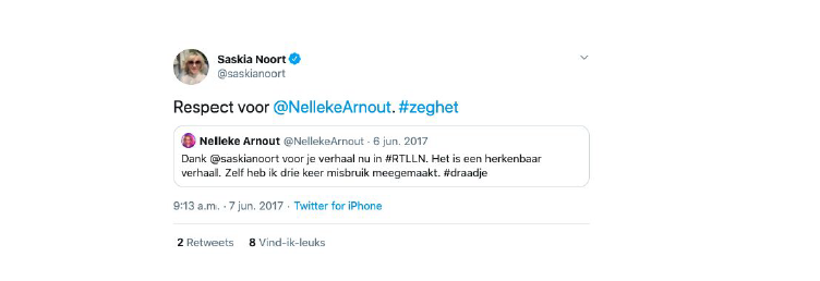 slachtoffers volgden en durfden hun verhaal via de hashtag te delen.
