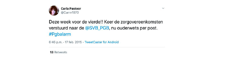 budget met de Sociale Verzekeringsbank (SVB). Haar hashtag #pgbalarm werd trending