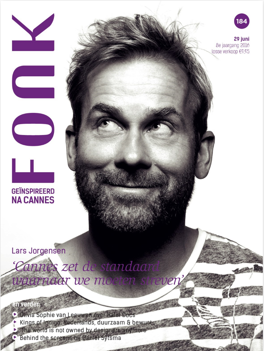 afgelopen weken toen het prijzenseizoen traditiegetrouw met de Cannes Lions werd afgesloten. Eugene Bay is één van de top-creatieven die weet what it takes; in een sprankelend interview deelt hij zijn mening en visie op de toekomst.Naast de terugblik op de’Cannes-vibe’ en de tips en tricks van de Nederlandse juryleden van dit jaar, brengt deze eerste èchte zomereditie van Fonk Magazine natuurlijk nog veel meer inspirerende items. Een kleine greep uit wat Fonk Magazine 184 nog meer te bieden heeft: