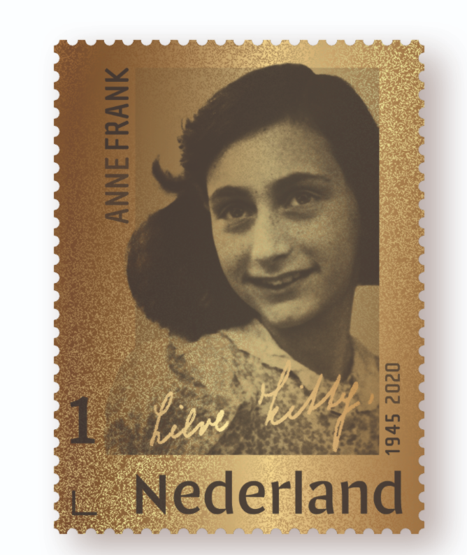 In de serie Einde van de Tweede Wereldoorlog verscheen afgelopen vrijdag de gouden postzegel Anne Frank, 1945 - 2020. Het is dit jaar 75 jaar geleden dat Anne Frank overleed. Dankzij Anne Franks dagboek, na de oorlog uitgegeven als Het Achterhuis, is haar naam wereldwijd synoniem geworden met de verschrikkingen