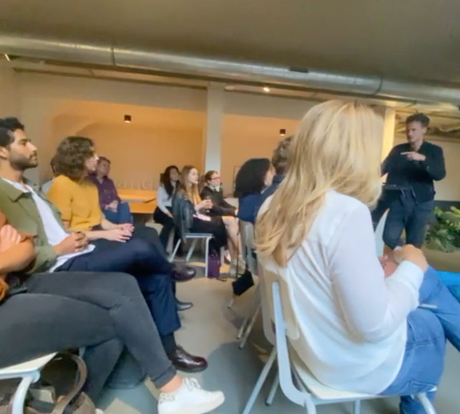 Samenkomen, het kan weer! Kyra Roest heeft dankbaar gebruik gemaakt van de fijne nazomer die ons gegund is en organiseerde woensdag 15 september een sessie met jong talent bij dawn. Thomas Kolster hield een sessie over het veranderende advertising milieu: bureautalent, HvA Digital Design masterstudenten, RA*W, Jonge Honden, YIM en ook FONK was van de partij.