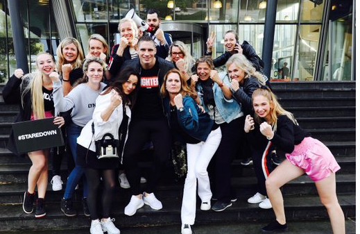 Compleet met boksring en bokshandschoenen daagt LINDA. de mediabureau-medewerkers uit tot een staredown met Glory-wereldkampioen kickboksen Rico Verhoeven.