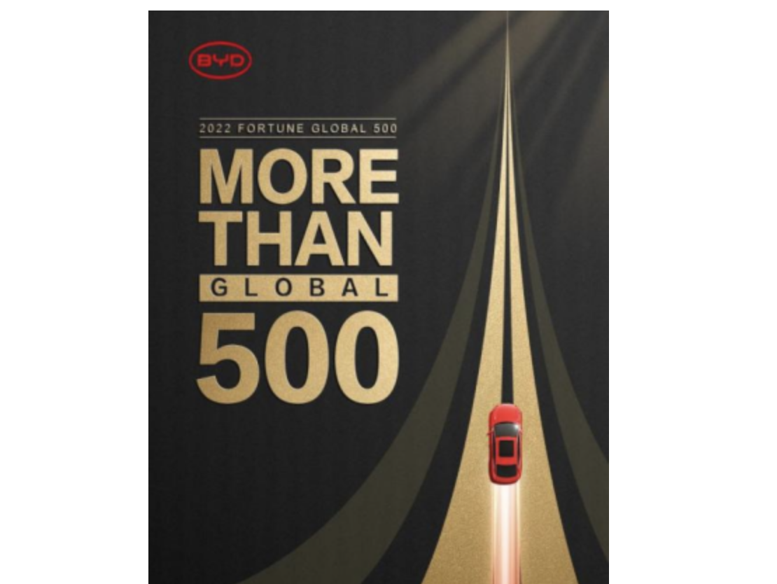 BYD opgenomen in de Fortune Global 500-lijst voor 2022