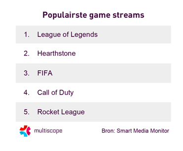 Gamen is ongekend populair in Nederland, maar het kijken naar gamen ook. 1,3 miljoen Nederlanders kijkt naar game streams, blijkt uit de Smart Media Monitor van Multiscope. Met name jongeren stemmen regelmatig af op de filmpjes van andere gamers.